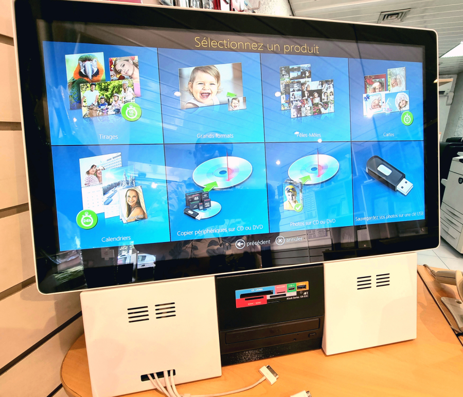 Le magasin dispose de deux bornes pour faciliter la prise de commande. Simples et ludiques à utiliser, vous pouvez commander trés facilement vos images à imprimer en 15 mn d'aprés tout supports et smartphones.